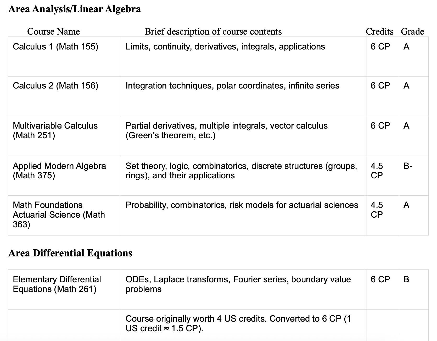 2. At least 6 credit points in differential equations, i.e.