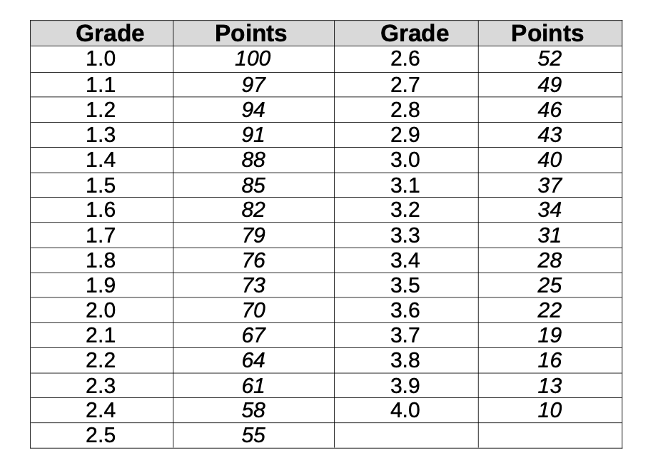 (2) For the criterion according to (1) no. 1, up to 100 points shall be awarded according to the
