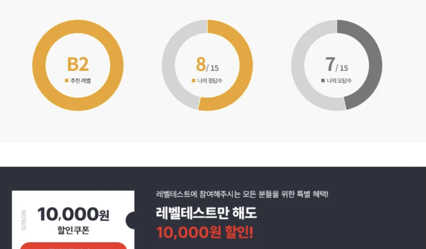 ๋ ๋ฒจ ์ง๋จ ํ ์คํธ๋ฅผ ๋ณด๊ณ ๋๋ฉด, ์๊ฐ ํ ์ธ ์ฟ ํฐ๋ ๋ฐ๊ธ ๋ฐ์ ์ ์๊ธฐ ๋๋ฌธ์ ์์ฐจ๊ฒ ์ ์ฉํ๋ค.
