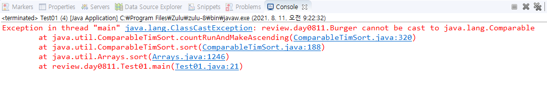 Arrays.sort(burgers); //Exception occurs
