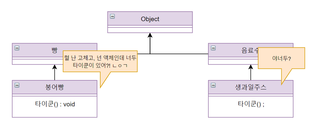 Object[] obj = {new ๋ถ์ด๋นต(), new ์๊ณผ์ผ์ฃผ์ค(), new ๋์()};