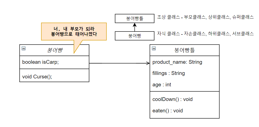 public class ๋ถ์ด2 extends ๋ถ์ด๋นต{ //is a ๊ด๊ณ (๋ถ์ด๋นต์ ์์๋ฐ์ ๋ถ์ด)