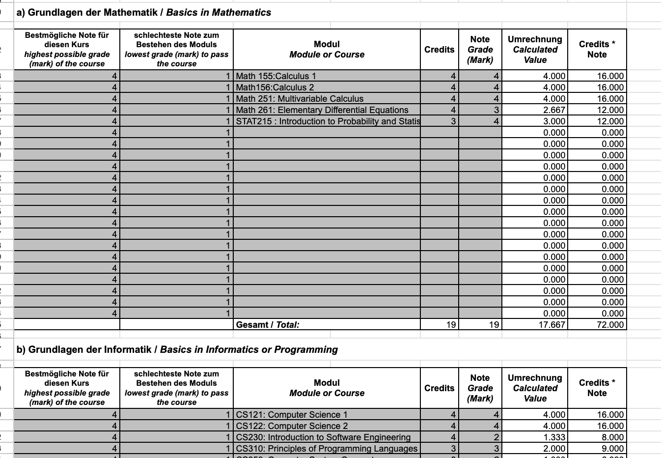 - Curriculum (module descriptions, course catalog or syllabus) of the underlying university degree; this document is very important for the check of the academic qualification!