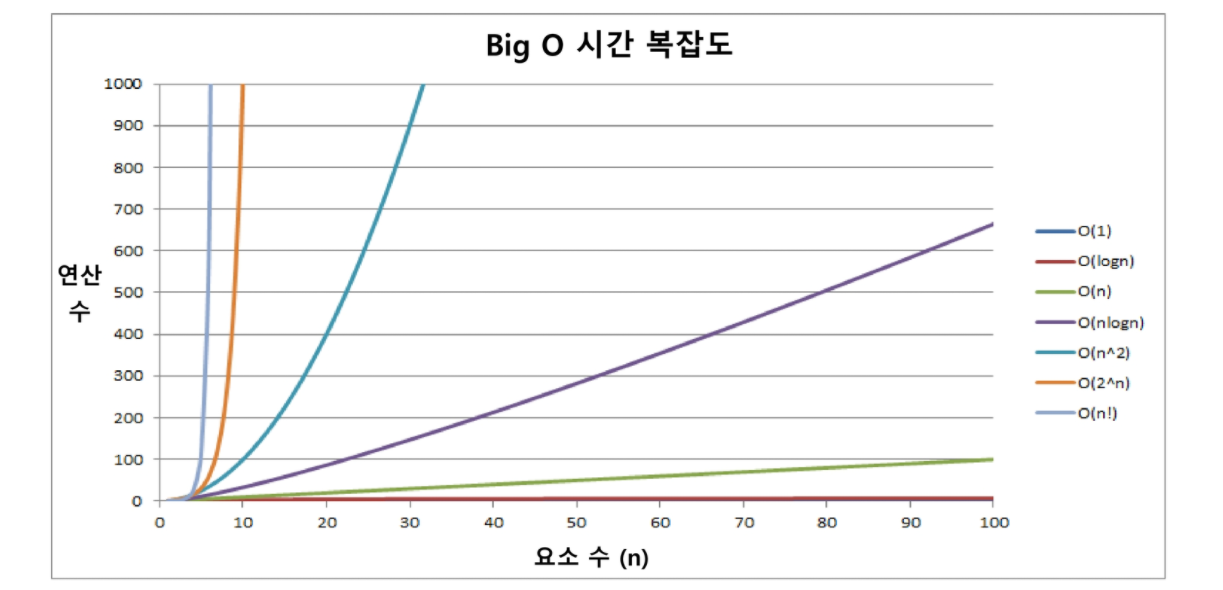 O(1), O(lgN), O(N): 1์ต, O(NlgN): 5๋ฐฑ๋ง, O(N^2): 1๋ง, O(N^3): 500, O(2^N) : 20, O(N!) 10
