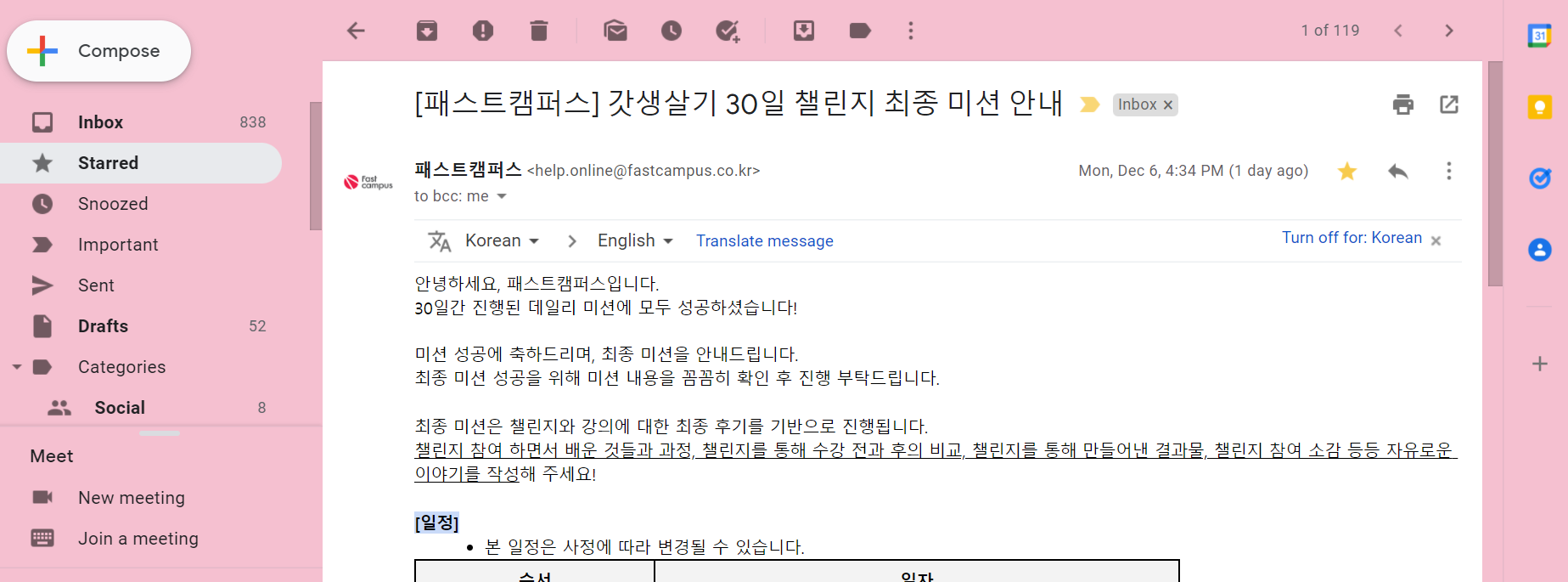 ์ด์ ์คํ 12/06(ํ)์ ํจ์คํธ์บ ํผ์ค์์ 11์ 30์ผ ๊ฐ์์ด๊ธฐ ์ฑ๋ฆฐ์ง ์ฑ๊ณต ์ด๋ฉ์ผ์ด ๋ฐ์ก๋์๋ค.