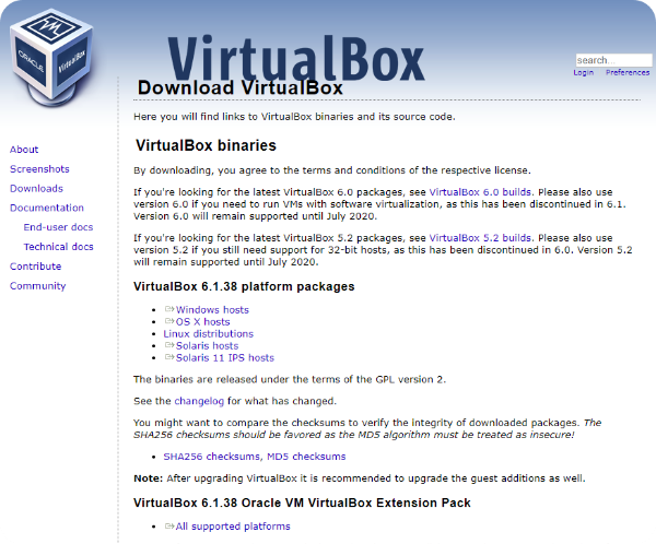 Welcome to VirtualBox.org! News Flash New September 2nd, 2022VirtualBox 6.1.38 released! Oracle today released a 6.1 maintenance release which improves stability and fixes regressions. See the Changelog for details. Important August 30th, 2022We're hiring!