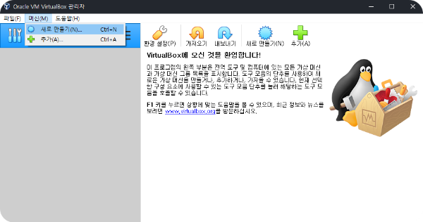 ํ๊ฒฝ ์ค์ ์ด ๋๋ฌ๋ค๋ฉด, ๋จธ์ > ์๋ก ๋ง๋ค๊ธฐ(N)๋ฅผ ํตํด ๊ฐ์ ๋จธ์ ์ ์์ฑํ ์ ์๋ค