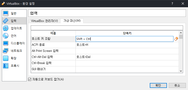์ค์ ๋ฐฉ๋ฒ์ ํธ์คํธ ํค ์กฐํฉ ๋จ์ถํค์นธ์ ๋๋ฅธ ํ, Shift ํค์ Ctrl์ ๋์์ ๋๋ฅด๋ฉด ์์์ ์ ๋ค์ด๊ฐ๋ค.