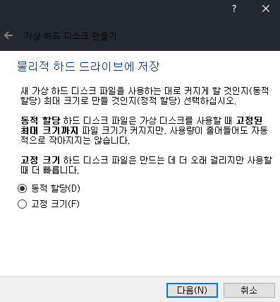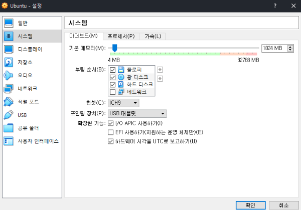 ์ฉ๋์ ํด์๋ก ์ข์ง๋ง ๋๋ ์ฉ๋์ด ์์ด์...1024MB๋ก ์ค์ ํ๊ณ ํ๋๋์คํฌ๋ ์ ๋ถ ๋ํดํธ ๊ฐ์ผ๋ก ์ค์ ํ๋ค. (VDI, ๋์ ํ ๋น)