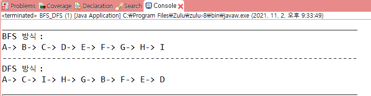 A-> C-> I-> H-> G-> B-> F-> E-> D ์์๋ก ๊ทธ๋ํ๋ฅผ ์ํํ๊ฒ ๋๋ค.